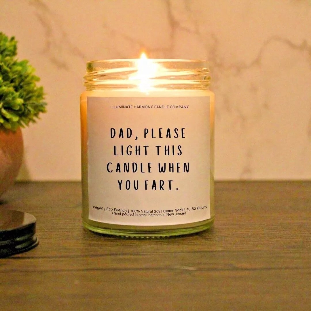 😂💨 Add a touch of humor to dad’s life with the ‘Dad, Please Light This Candle When You Fart‘ candle. This playful and practical candle is perfect for those moments when dad needs a little help keeping the air fresh. Available in various scents, it’s designed to bring a smile to his face while effectively neutralizing odors.